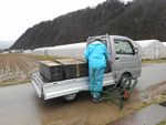 〜 畝立て(トラクターにて) 4/01 高畝(レーキにて手作業) 2017/4/7(金) ☆本日から米苗君の搬入が始まりました。 JAさんも頑張ってます。 ☆スタッフもフル回転です。